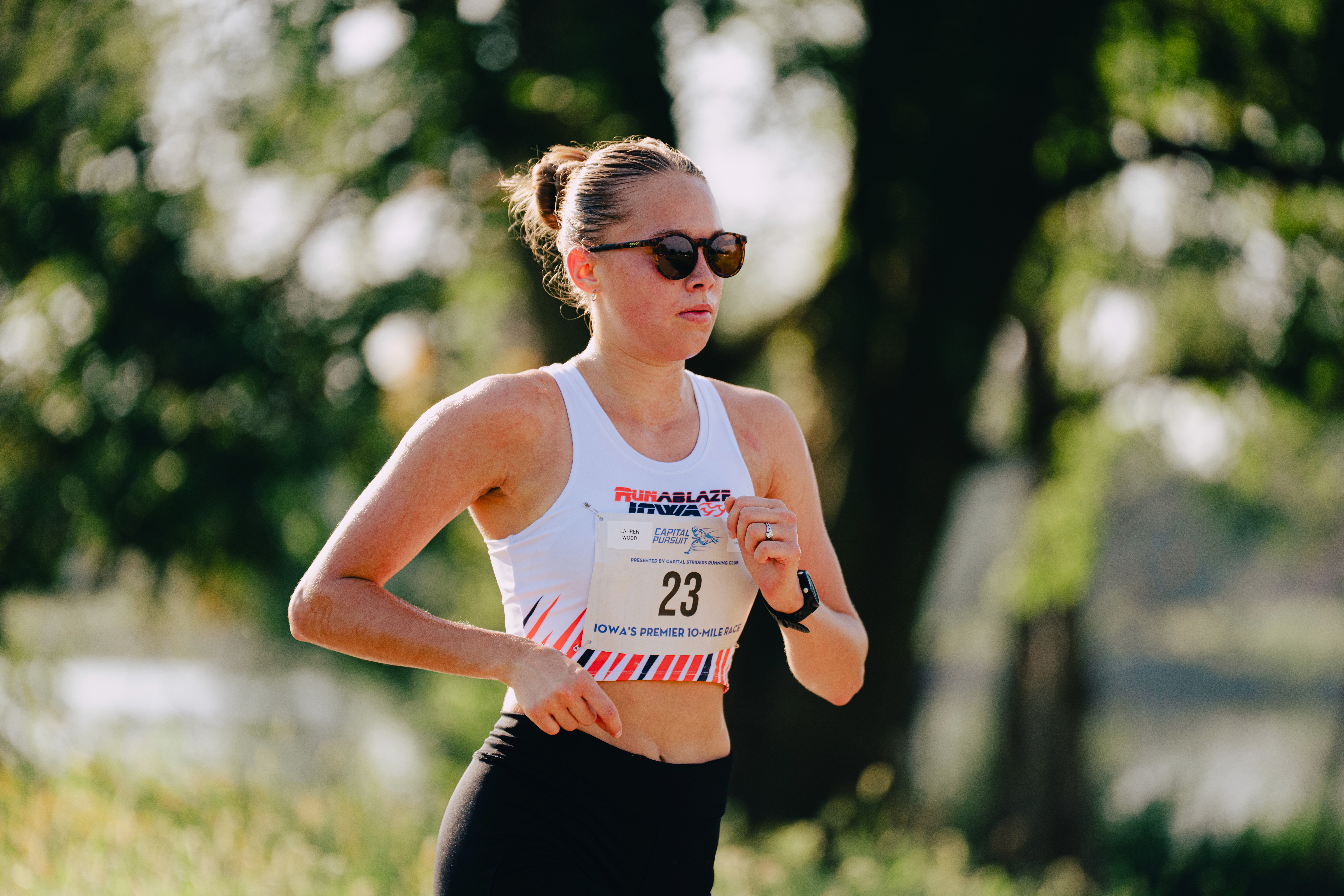 Race photos for the Runnablaze team at the 2025 Capital Pursuit 10-Miler in Des Moines, Iowa.