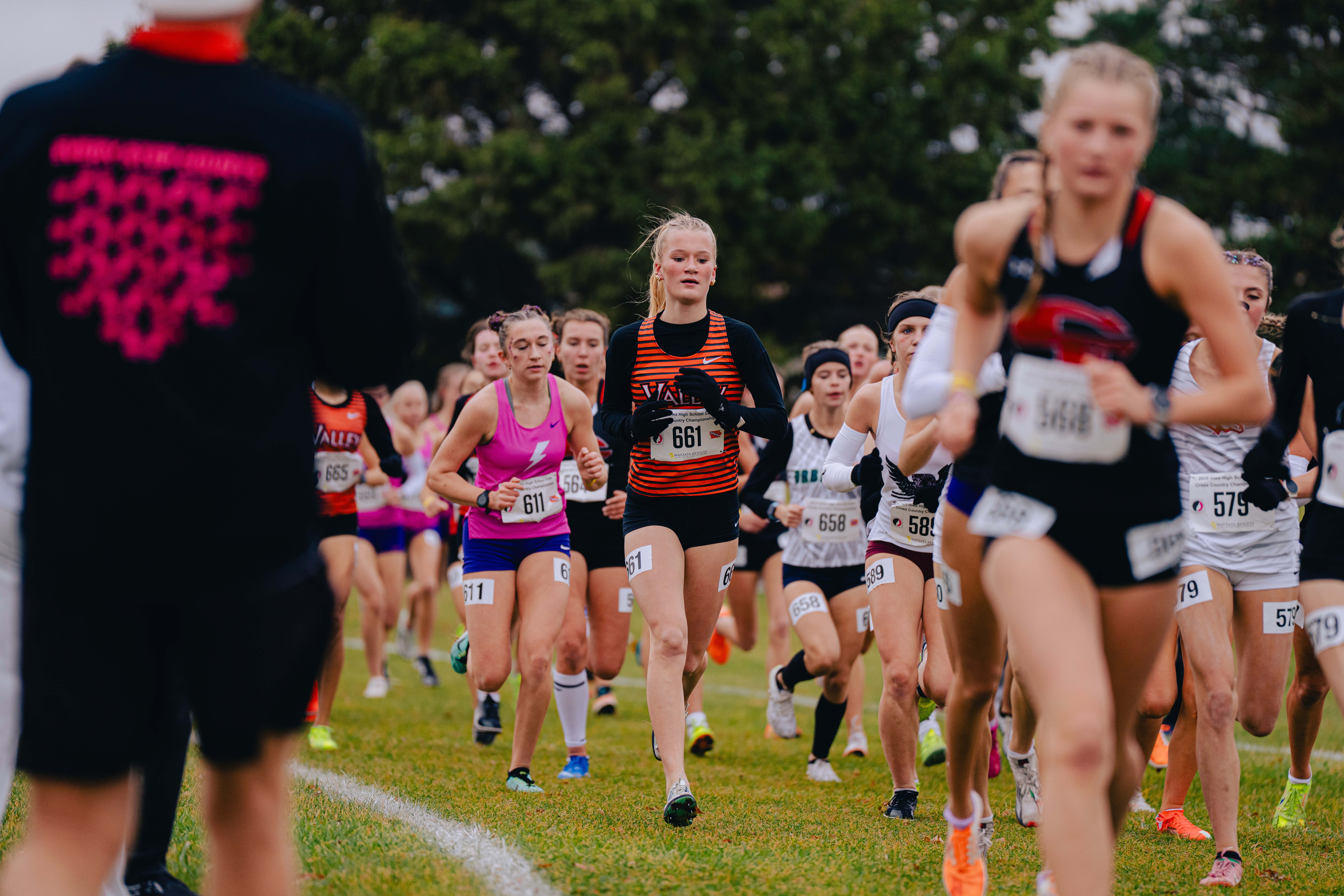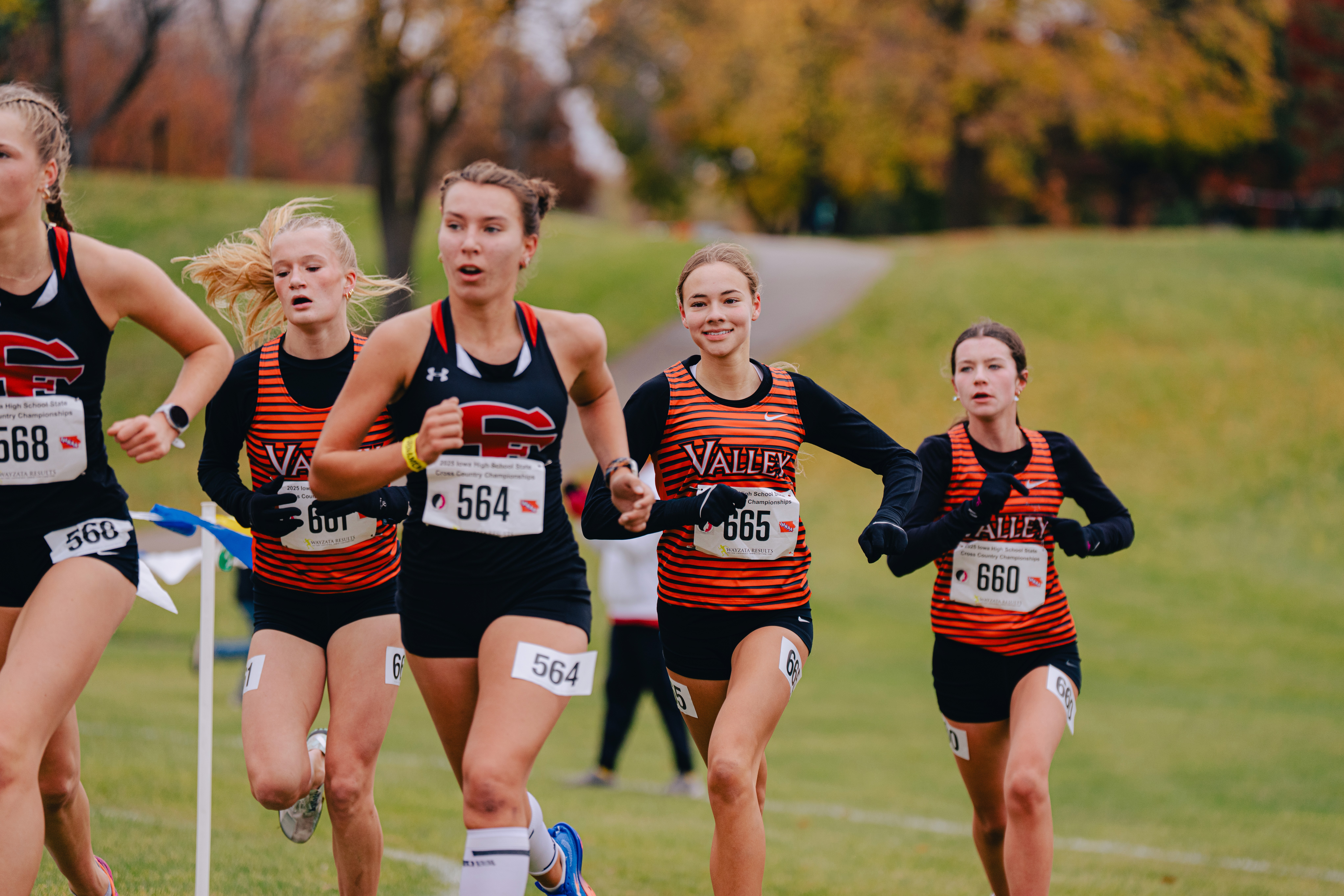 Valley High School Cross Country boys and girls racing in the 2025 Iowa state high school cross country meet, held in Fort Dodge, Iowa.
