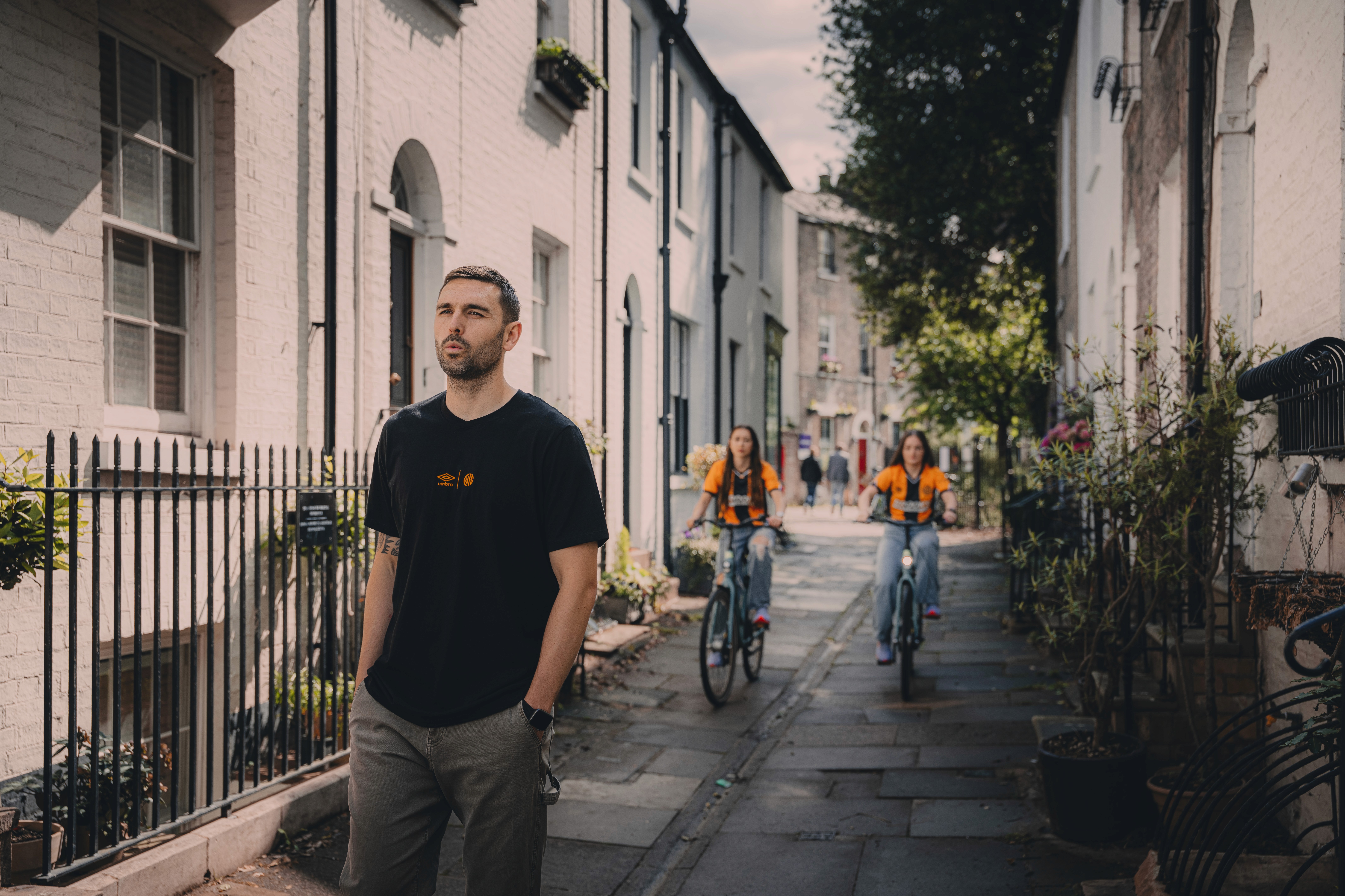 The Cyclists Scene featuring Greg Taylor, Lauren Rouse, and Alysha Stojko-Down from the Cambridge United FC Rebrand project. This was a double-launch of the new club crest and the home shirt for the 2025/26 season.