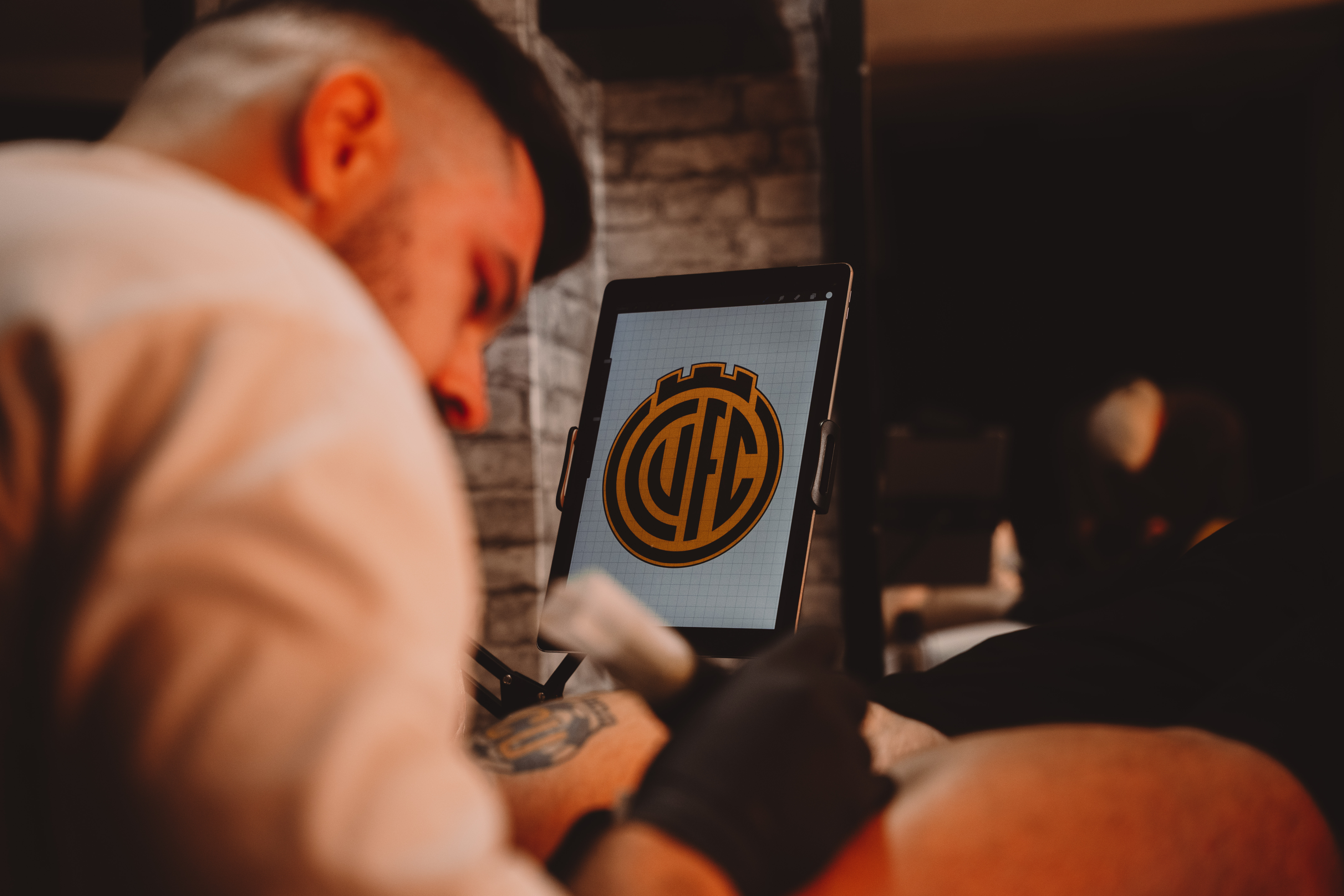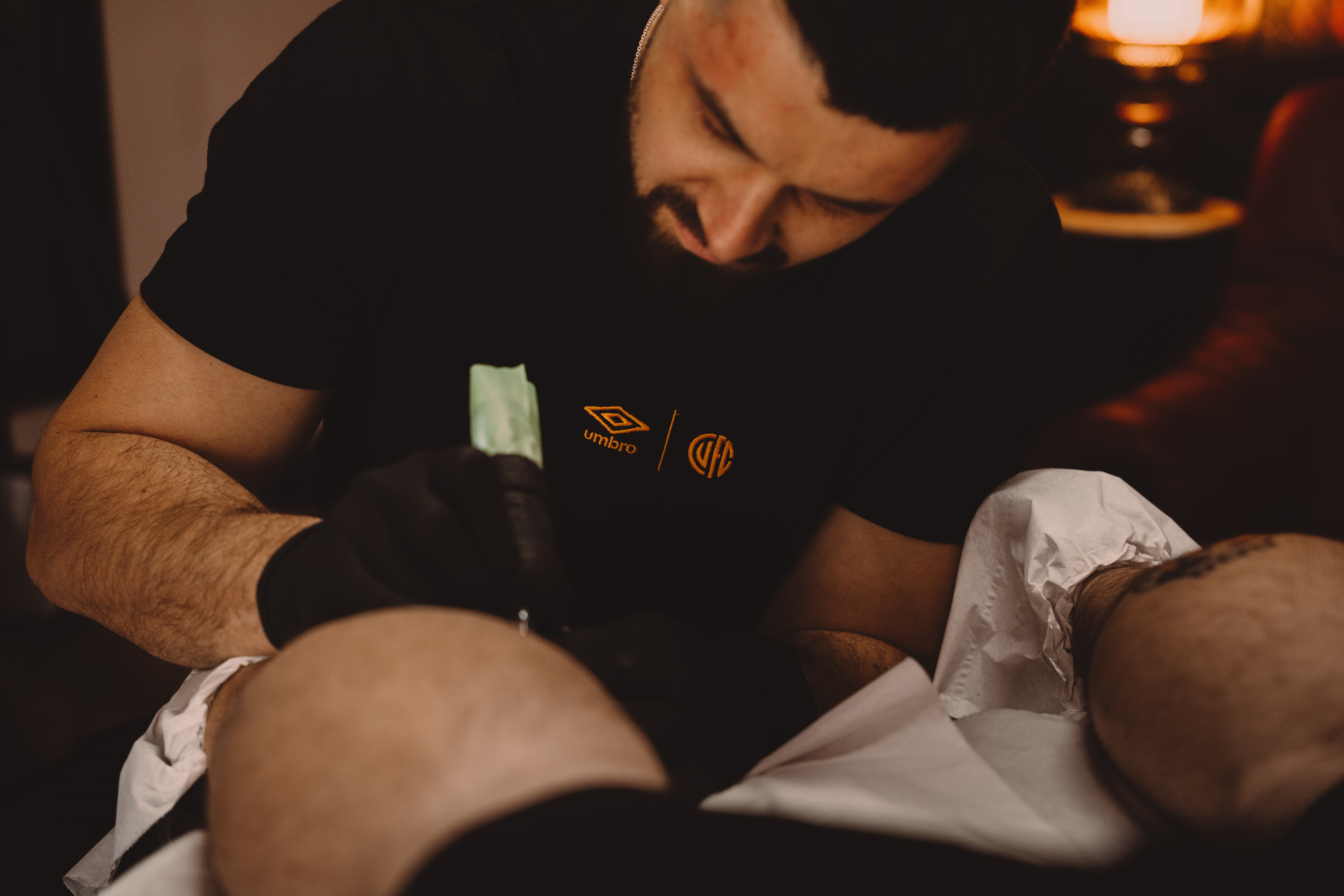 The Tattoo Shop Scene featuring Josh Coulson from the Cambridge United FC Rebrand project. This was a double-launch of the new club crest and the home shirt for the 2025/26 season.